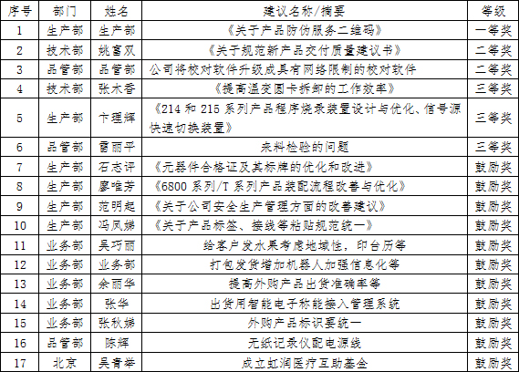 虹潤(rùn)公司2020年度合理化建議獲獎(jiǎng)名單