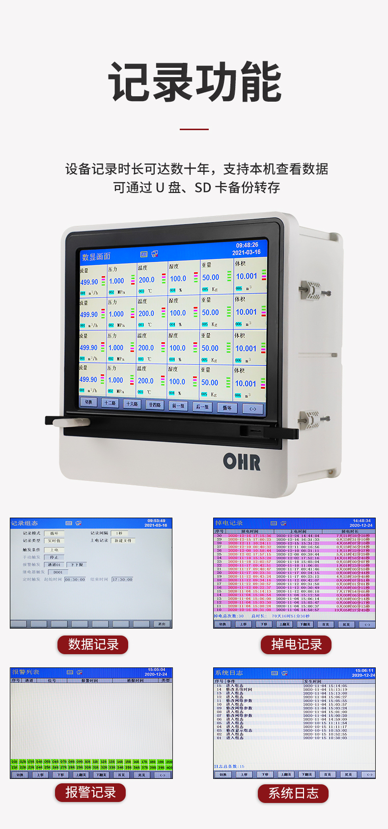OHR-K700系列觸摸數(shù)據(jù)采集控制工作站采用新型大規(guī)模集成電路,對(duì)輸 入、輸出、電源、信號(hào)采取可靠保護(hù)和強(qiáng)抗干擾設(shè)計(jì)。70路萬能信號(hào)輸入??蓭?0限報(bào)警輸出,14 路變送輸出,6路DI輸入,RS232/485通訊接口,以太網(wǎng)接口,微型打印機(jī)接口和USB 接口,SD卡插座;支持無線鼠標(biāo)操作。