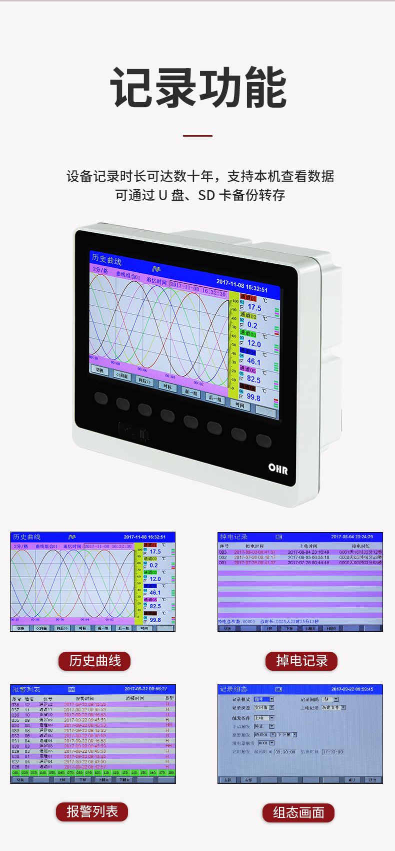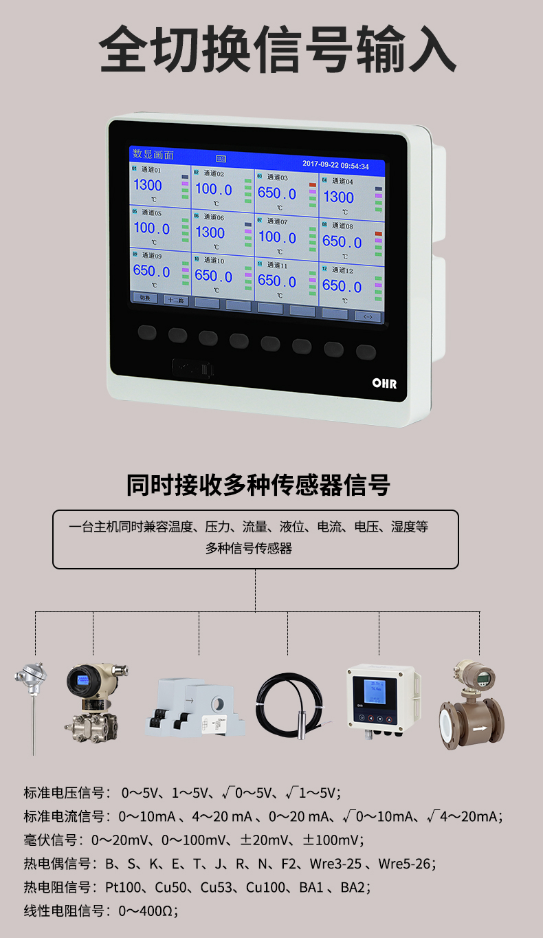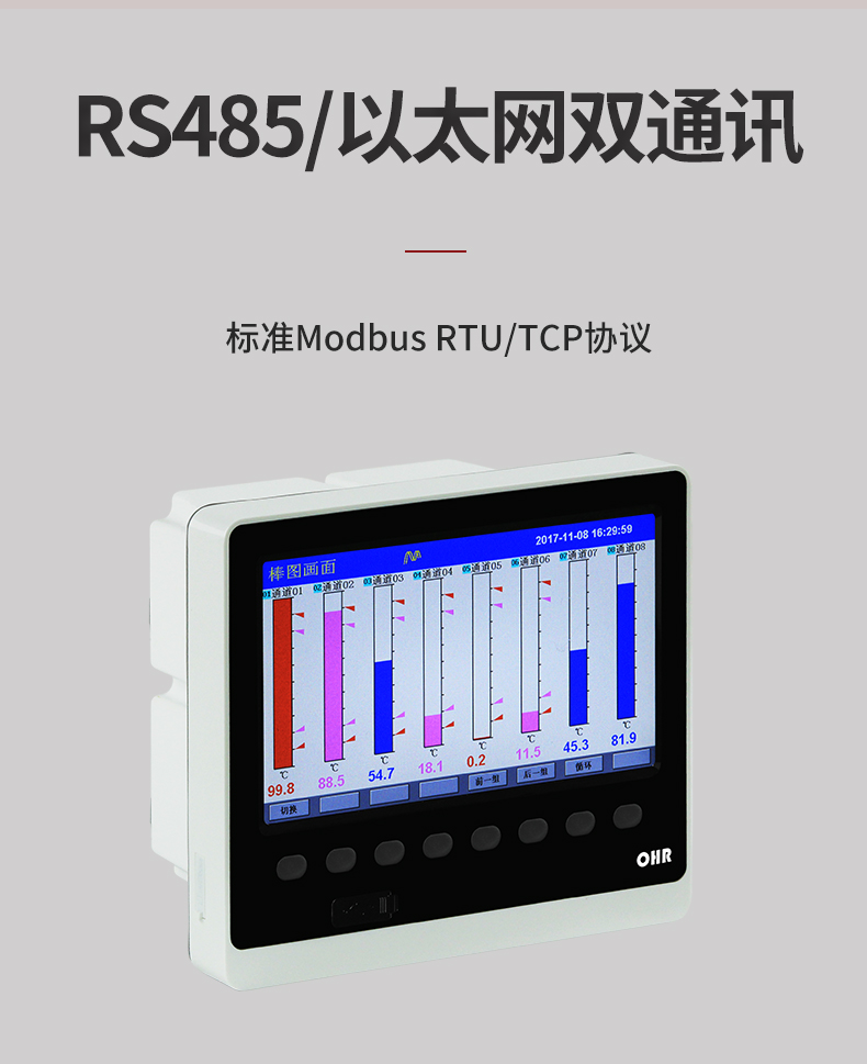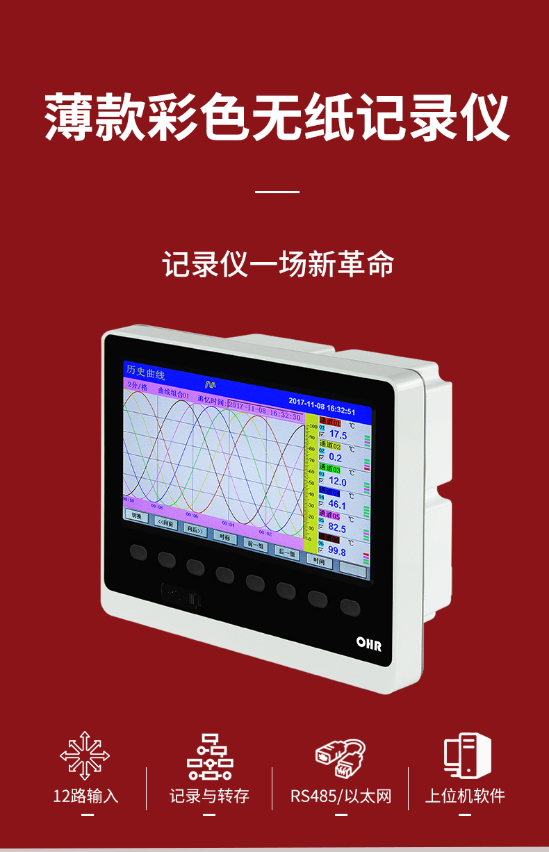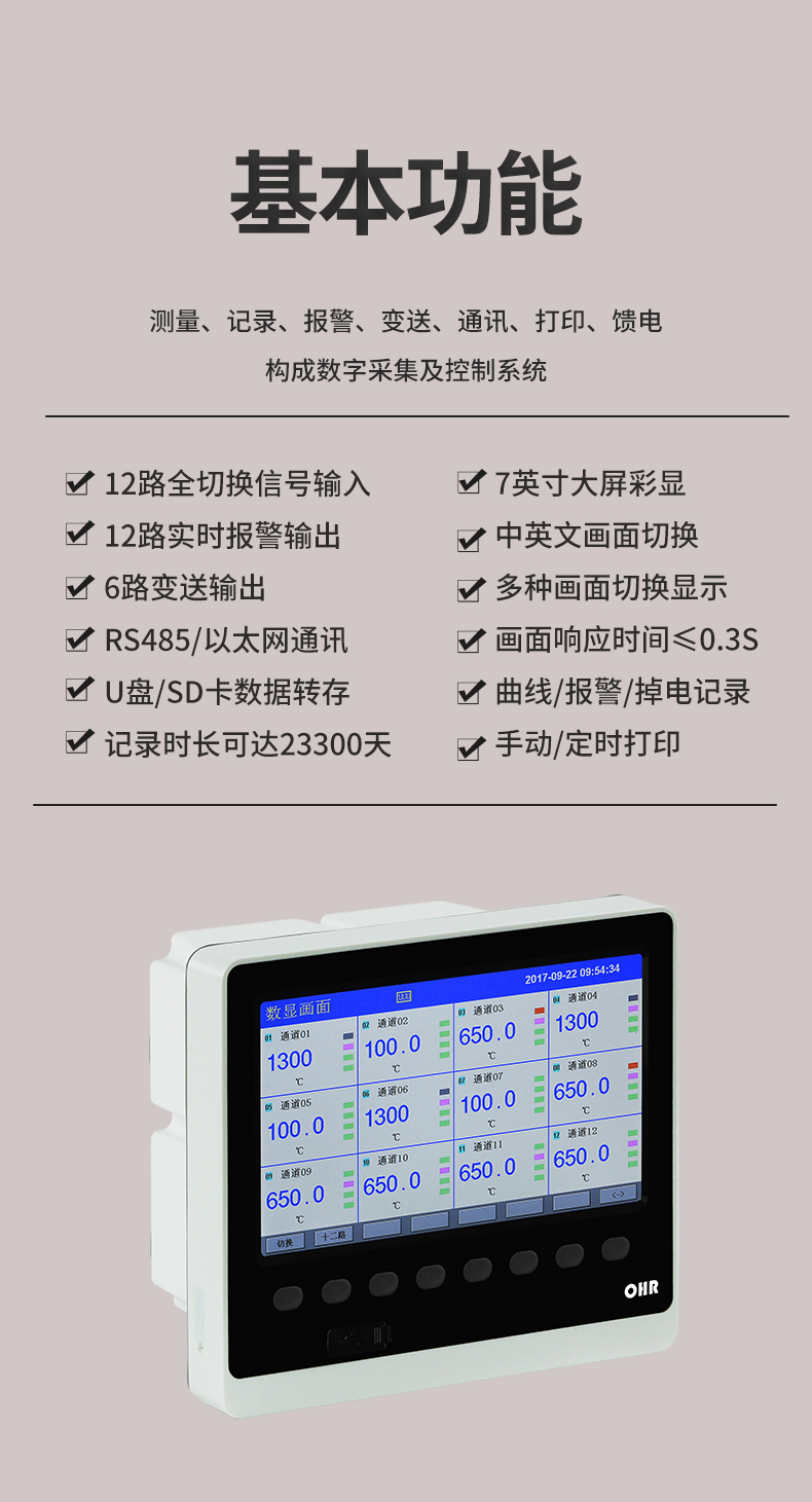 OHR-F800系列彩色無紙記錄儀采用新型大規(guī)模集成電路,對輸入、輸出、電源、信號采取可靠保護和強抗干擾設計。機身短節(jié)約空間,深度僅為76mm。12路萬能信號輸入,可帶12路報警輸出,6個變送輸出,RS485通訊接口,以太網(wǎng)接口,微型打印機接口和USB接口,SD卡插座。產(chǎn)品廣泛應用于冶金、石化、電力、制藥、新能源現(xiàn)代農(nóng)業(yè)、生產(chǎn)過程等諸多領域。
