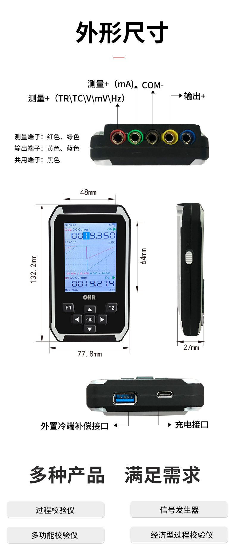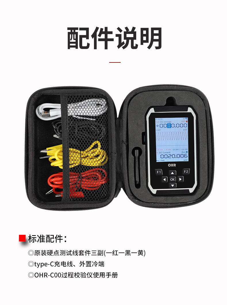 OHR-C00多功能校驗儀是帶測量與輸出的過程信號校驗儀。產(chǎn)品具有高精度、信號任意切換、續(xù)航能力強、大彩屏占比、小巧可裝口袋等特點,產(chǎn)品功能設置簡單易用,為使用者帶 來了更便捷的體驗。