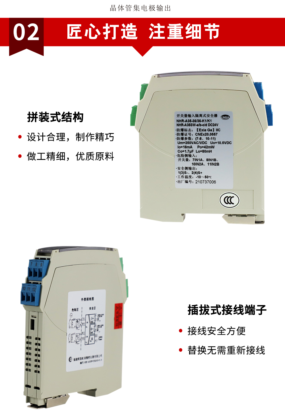 OHR-A35系列開(kāi)關(guān)量輸入檢測(cè)端隔離柵接受來(lái)自危險(xiǎn)區(qū)的開(kāi)關(guān)或接近開(kāi)關(guān)輸入,通過(guò)安全柵隔離輸出到安全側(cè)的繼電器或晶體管輸出,它具有輸入狀態(tài)檢測(cè)指示,可進(jìn)行正反向控制,該產(chǎn)品需獨(dú)立供電,輸入/輸出/電源三隔離。