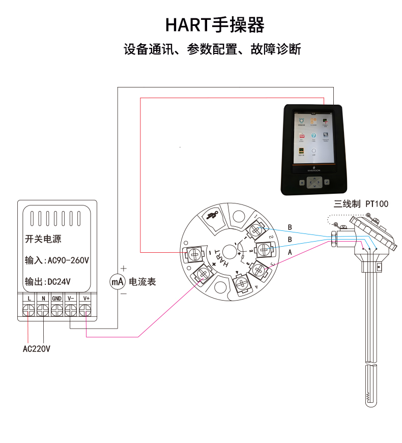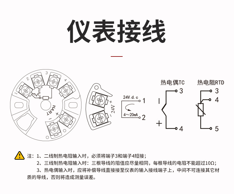 HART智能溫度變送器(圓卡),用于熱電阻(RTD)、熱電偶(TC)信號輸入,二線制4~20mA模擬輸出,通過HART協(xié)議組態(tài),安裝于傳感器內(nèi)部(Form B)。