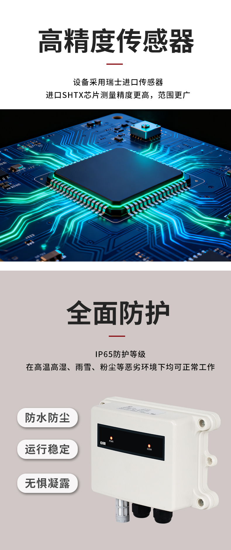 虹潤公司是專業(yè)生產(chǎn)環(huán)境監(jiān)測儀表的國家專精特新“小巨人”企業(yè)。生產(chǎn)的一體式溫濕度變送器,具有溫度、濕度、露點(diǎn)高精準(zhǔn)的測量與變送,報(bào)警繼電器輸出,RS485/RS232通訊,IP65防護(hù)等級等特點(diǎn)。產(chǎn)品獲得一種手持式低功耗溫濕度檢測儀、大屏幕溫濕度記錄儀等2項(xiàng)國家發(fā)明專利,主持起草物聯(lián)網(wǎng)智能溫度儀表通用技術(shù)條件、冷鏈溫度記錄儀等2項(xiàng)國家標(biāo)準(zhǔn),以及通信系統(tǒng)多通道數(shù)據(jù)采集控制終端規(guī)范軍用標(biāo)準(zhǔn),以及現(xiàn)場設(shè)備集成等5項(xiàng)智能制造國家標(biāo)準(zhǔn),參與國際5G標(biāo)準(zhǔn)制定,取得溫濕度儀表等3項(xiàng)相關(guān)軟件著作權(quán)。產(chǎn)品廣泛應(yīng)用于工業(yè)現(xiàn)場、農(nóng)業(yè)大棚、倉儲(chǔ)物流、地下管廊、養(yǎng)殖孵化、配電機(jī)房等諸多領(lǐng)域。