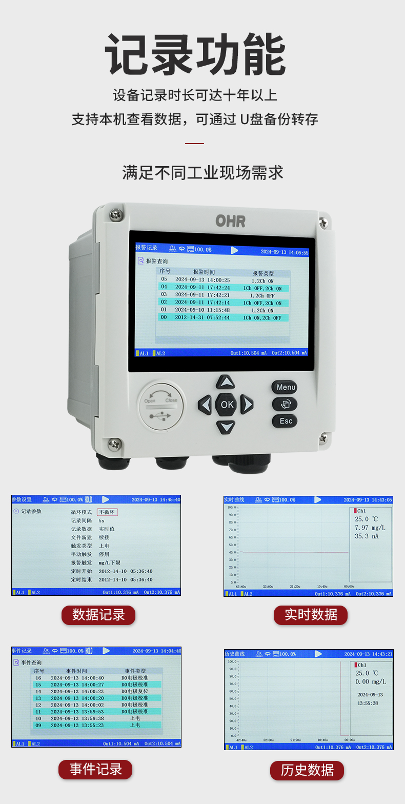 OHR-DO80系列溶解氧記錄儀是一款外觀精美、功能強(qiáng)大的在線電化學(xué)分析儀器,配接電極可測(cè)量溶解到水中的分子態(tài)氧含量。使用高清真彩液晶屏為顯示窗口,使產(chǎn)品具有顯示清晰、色彩豐富等特點(diǎn)。操作簡(jiǎn)便、響應(yīng)快,記錄存儲(chǔ)與控制功能強(qiáng)大,多種通訊接口選擇,是一款功能齊全、操作方便、精確可靠、高性價(jià)比的產(chǎn)品,在現(xiàn)場(chǎng)應(yīng)用中表現(xiàn)卓越。