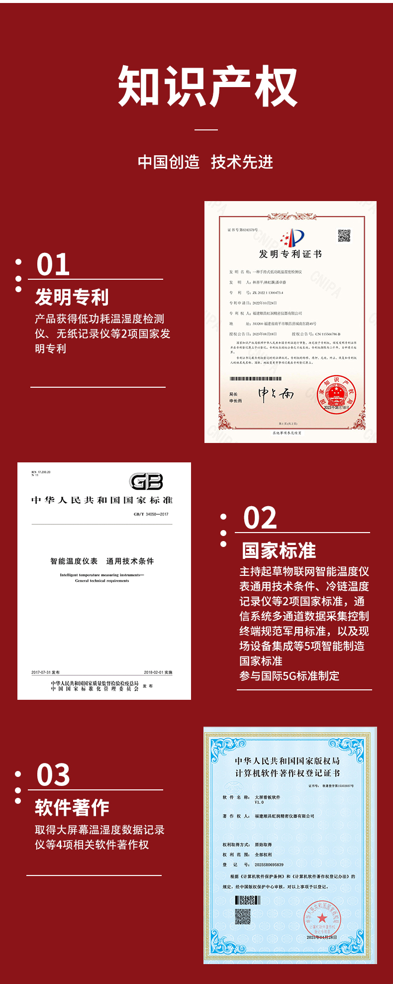 虹潤(rùn)公司是專業(yè)生產(chǎn)環(huán)境監(jiān)測(cè)儀表的國家專精特新“小巨人”企業(yè)。生產(chǎn)的大屏噪音溫濕度記錄儀,具有高清大屏顯示,數(shù)據(jù)記錄與轉(zhuǎn)存,同步觸發(fā)可靠預(yù)警,RS485或以太網(wǎng)通訊等特點(diǎn)。產(chǎn)品獲得一種手持式低功耗溫濕度檢測(cè)儀、無紙記錄儀等2項(xiàng)國家發(fā)明專利,主持起草物聯(lián)網(wǎng)智能溫度儀表通用技術(shù)條件、冷鏈溫度記錄儀等2項(xiàng)國家標(biāo)準(zhǔn),通信系統(tǒng)多通道數(shù)據(jù)采集控制終端規(guī)范軍用標(biāo)準(zhǔn),以及現(xiàn)場(chǎng)設(shè)備集成等5項(xiàng)智能制造國家標(biāo)準(zhǔn),參與國際5G標(biāo)準(zhǔn)制定,取得大屏幕溫濕度數(shù)據(jù)記錄儀等3項(xiàng)相關(guān)軟件著作權(quán)。產(chǎn)品廣泛應(yīng)用于電子制造、醫(yī)療科研、倉儲(chǔ)管理、畜牧養(yǎng)殖、建筑工程等諸多領(lǐng)域。